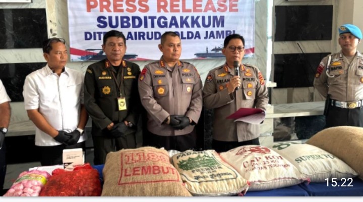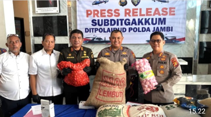 IGI Com Jambi //– Direktorat Polisi Perairan dan Udara (Ditpolairud) Polda Jambi menggelar konferensi pers terkait pengungkapan kasus pengangkutan komoditas pertanian dan bahan kebutuhan pokok tanpa dokumen karantina yang sah.