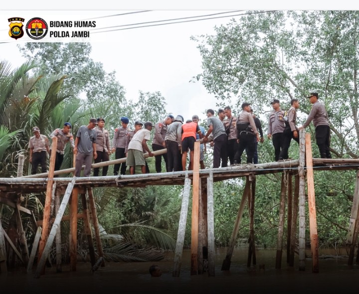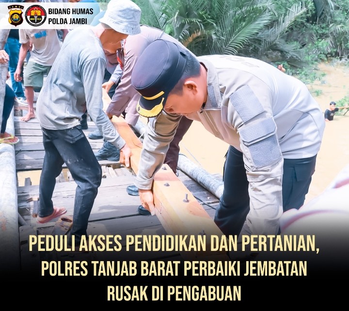 Kapolres Tanjab Barat AKBP Agung Basuki menegaskan bahwa perbaikan jembatan ini tidak hanya untuk menunjang aktivitas pendidikan, tetapi sekaligus menjaga ketahanan pangan daerah.